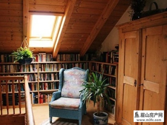 木制的阁楼本就带着古色古香的感觉。沿墙而设的书架更是让整个空间都充满浓浓的