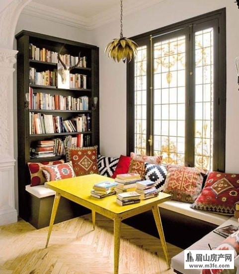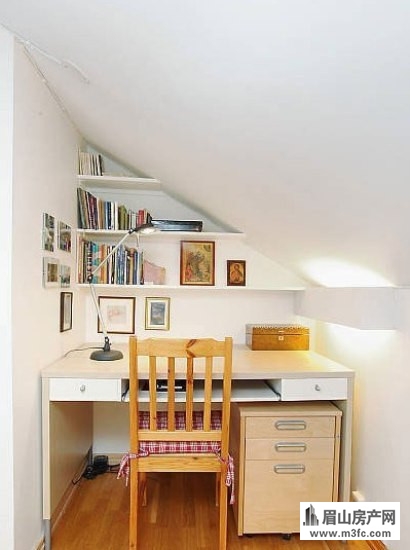美观。不如学学上图的设计,在墙面上设计几个小搁架放上书本,下方安置一个小书