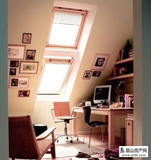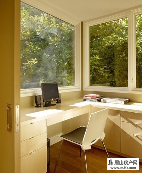 成小小的书房也算是空间的合理利用。大大的窗户将阳光引进房子中,在暖暖的阳光