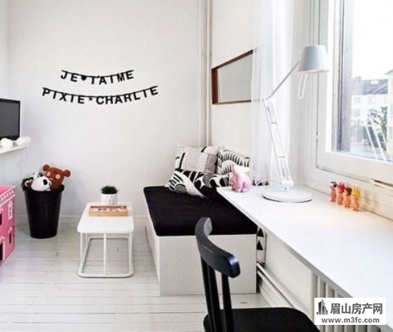 置上一个简易的书架吧,加上一个可坐可躺的飘窗相信这会是爱书者的天堂。