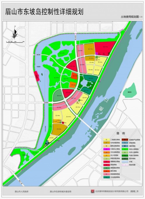 2013年4月,《眉山市东坡岛控制性详细规划和城市设计》经审议通过。该规划显示,东坡岛规划建设总用地面积约3.15平方公里的,规划居住3万人。公共绿地占总建设用地的比例达44%,加之上千亩的湿地公园和周边千亩水域等,将化身为眉山主城区的“绿肺”。按照该规划,对东坡岛定位为:眉山城市中央休闲区(CRD),东坡岛将打造成都都市圈的现代休闲示范区,眉山旅游业发展的龙头。今后的东坡岛将成为眉山的城市文化客厅、生态休闲绿洲和都市活力中心。